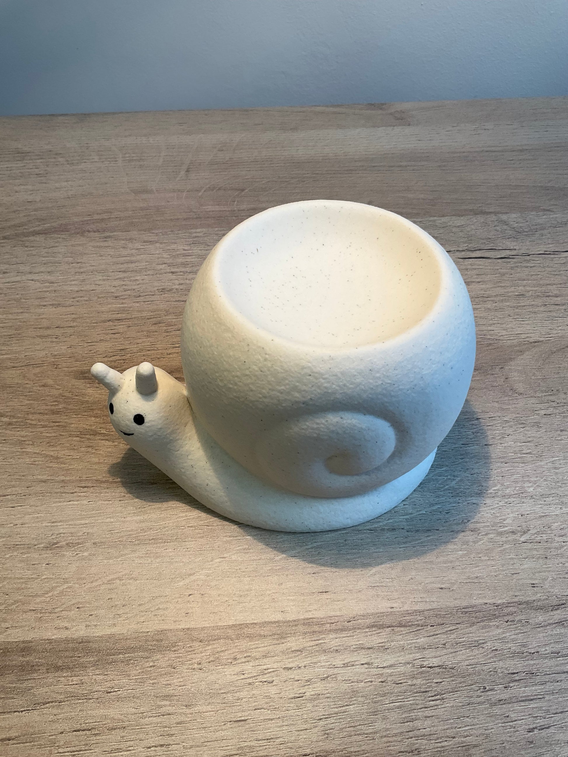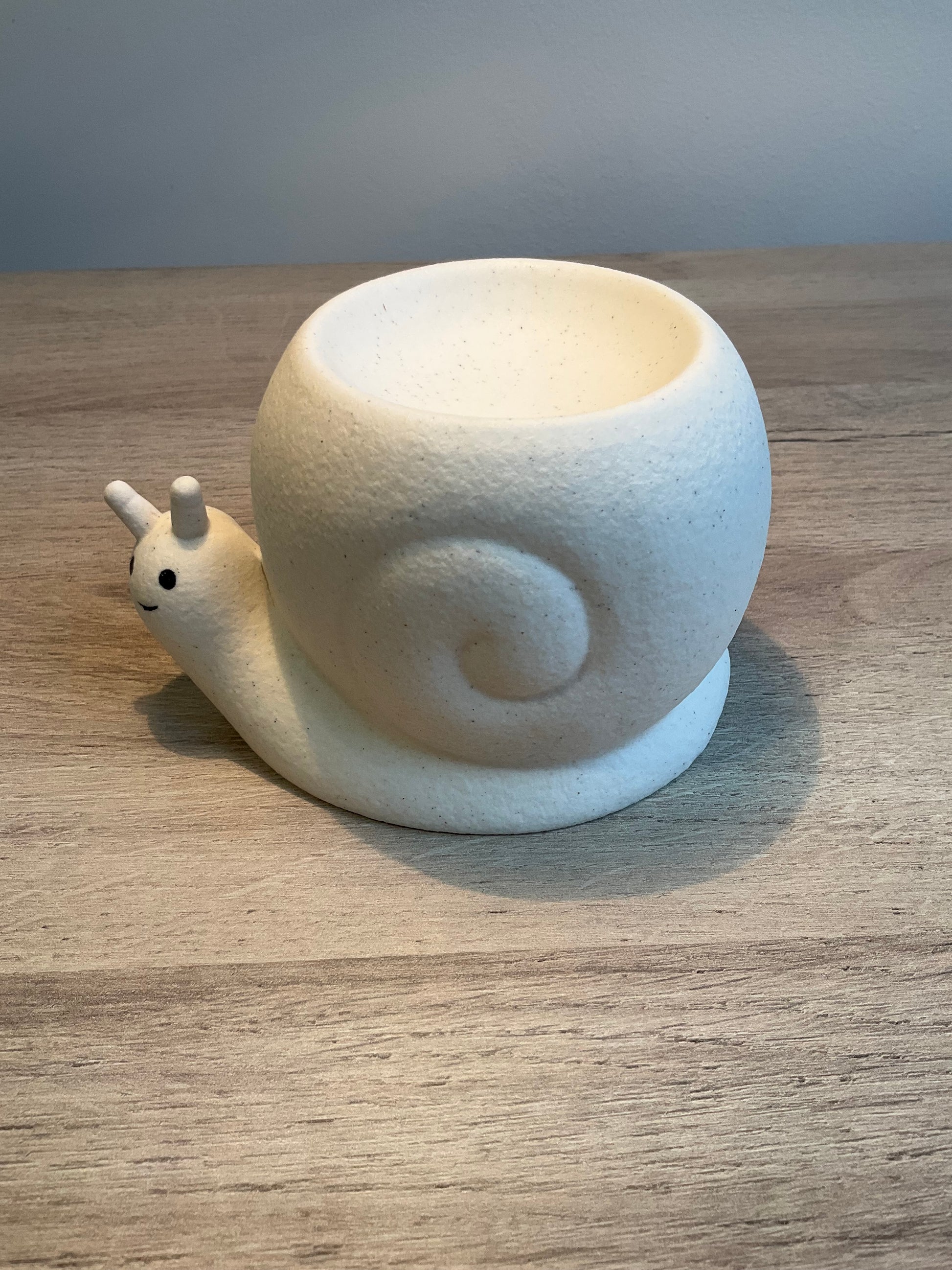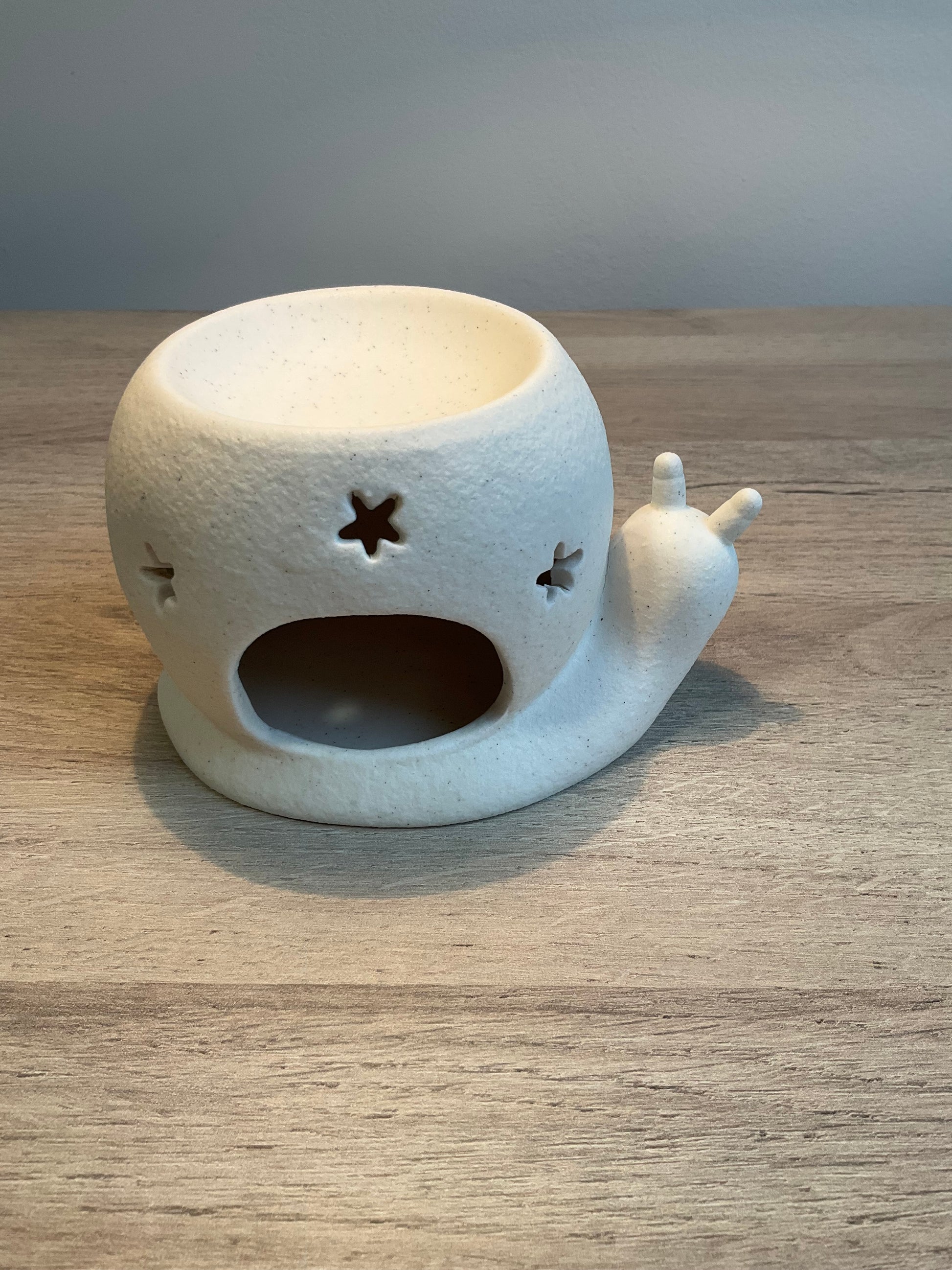 Encantador quemador de cera o esencias de cerámica con forma de caracol, ideal para aromatizar espacios mientras aporta un toque decorativo original y delicado. Su diseño inspirado en la naturaleza lo convierte en una pieza única que combina armonía, calma y estilo.